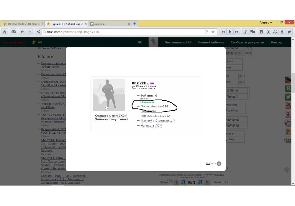 Necromancer163 vs Busikkk Турнир+ FIFA World Cup-24 4Stars Игра заявлена 14 Июля 2014 (#150612) | ||||||||||||||||||||||||||||||||||
