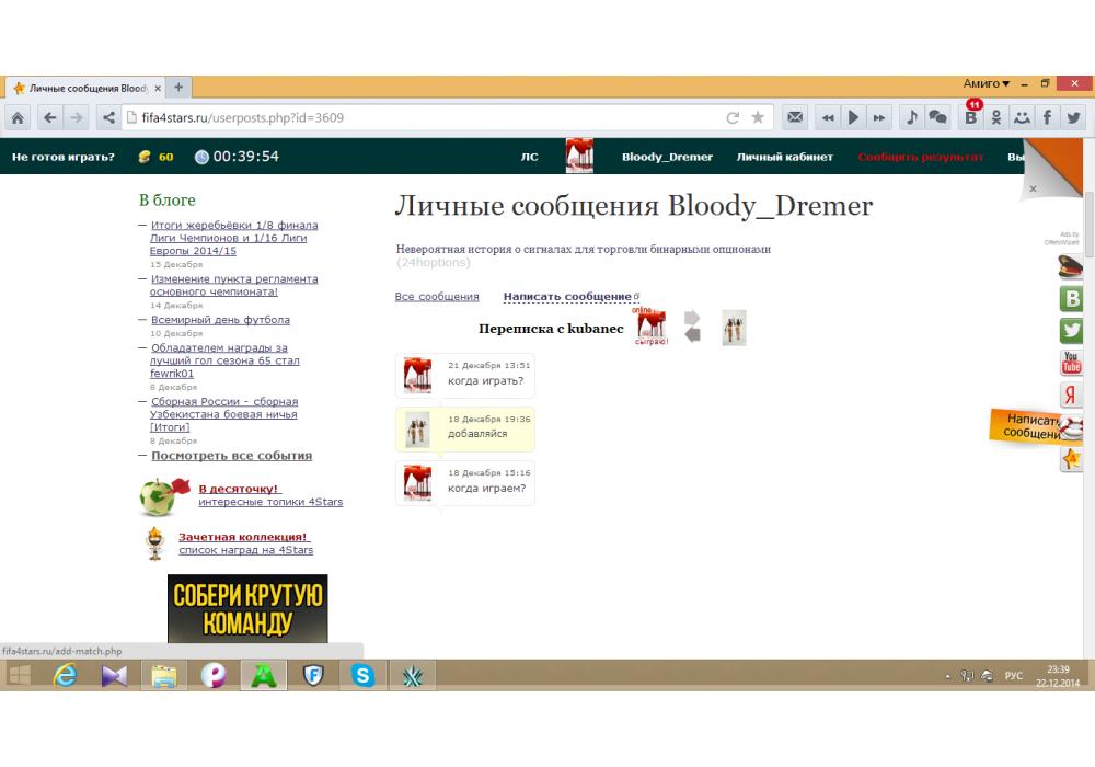 Lanist vs kubanec Ultimate Team Coins Cup-3 FIFA World Игра заявлена 22 Декабря 2014 (#217625) | ||||||||||||||||||||||||||||||||||