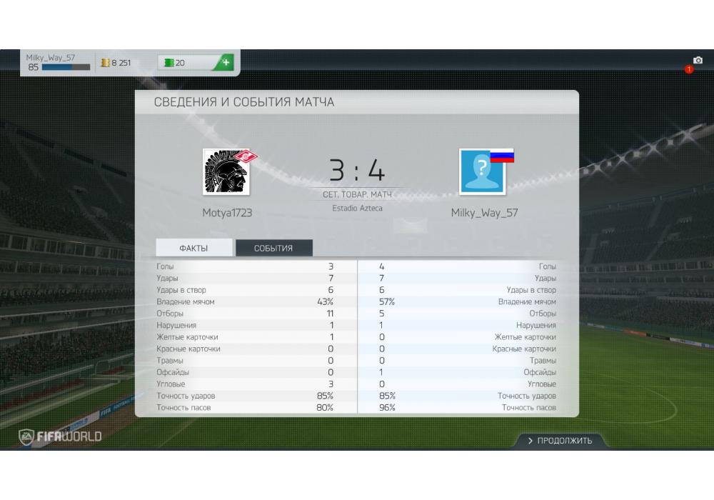 Milky_Way_57 vs СПАРТАНЕЦ турнир+ Кrabo & 4Stars Cup FIFA World Игра заявлена 10 Января 2015 (#222736) | ||||||||||||||||||||||||||||||||||