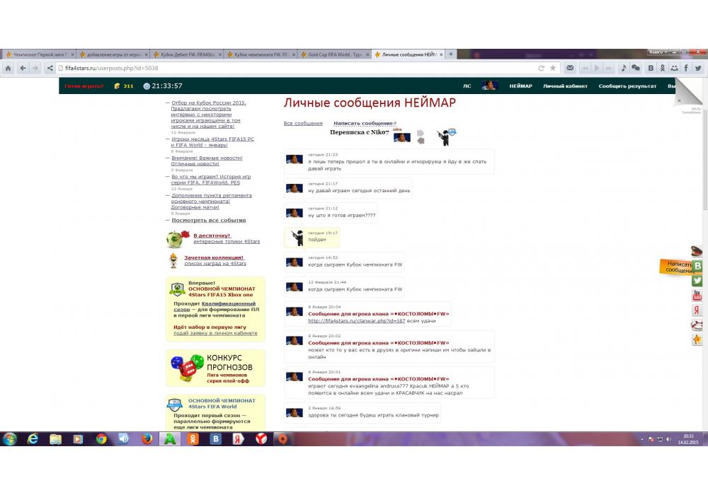НЕЙМАР vs $Nik$07 Кубок чемпионата FW Игра заявлена 14 Февраля 2015 (#237308) | ||||||||||||||||||||||||||||||||||