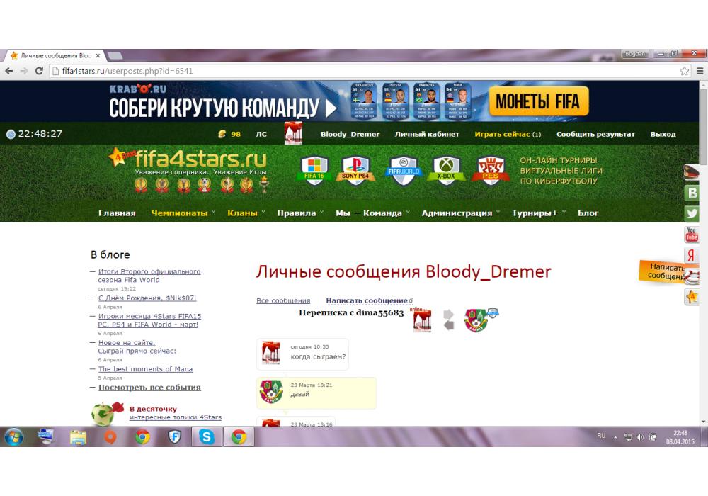 Lanist vs dima55683 Турнир+ FIFA World Scouts Cup Игра заявлена 8 Апреля 2015 (#265792) | ||||||||||||||||||||||||||||||||||