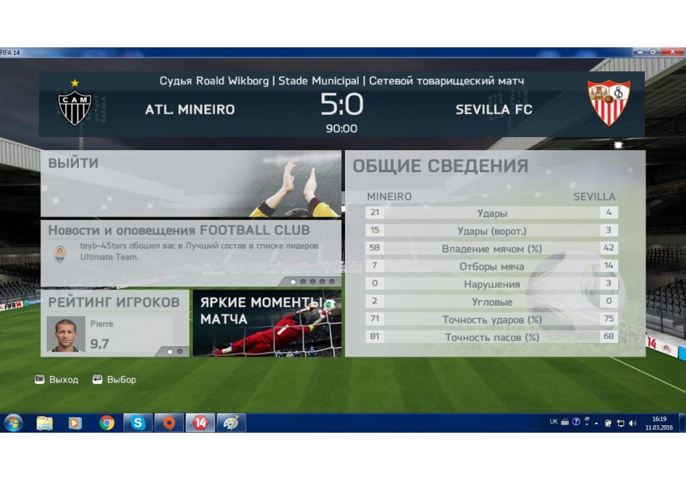 Atletico Mineiro vs Sevilla FC Чемпионат Первой лиги PC 14 Игра заявлена 11 Марта 2016 (#399096) | ||||||||||||||||||||||||||||||||||