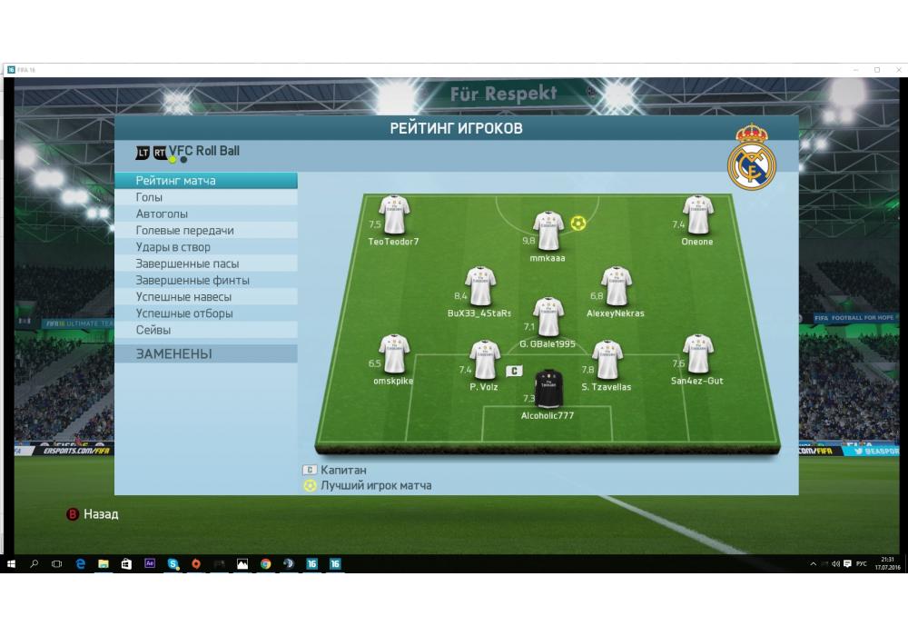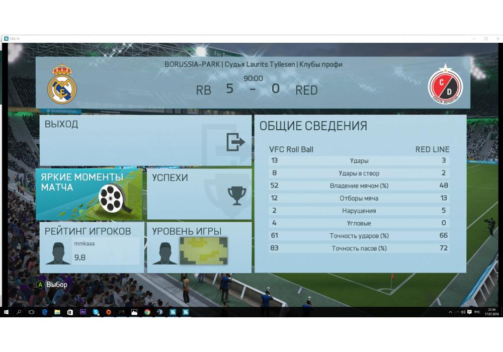 VFC Roll Ball vs RED LINE ALMERIA Турнир+ 4Stars Cup FIFA16 PC Pro (режим профи) Игра заявлена 17 Июля 2016 (#450734)