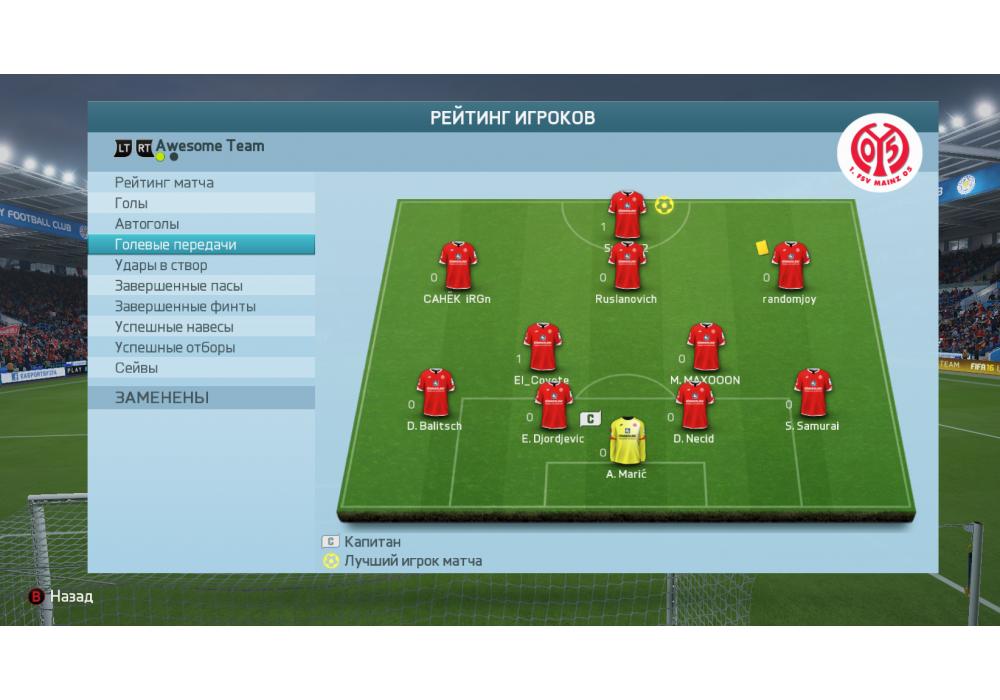 Awesome Team vs Primitive club Турнир+ 4Stars Cup FIFA16 PC Pro (режим профи) Игра заявлена 19 Июля 2016 (#451536)