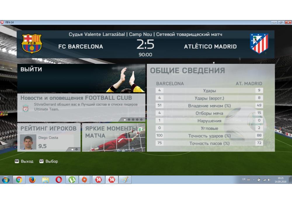 Atletico de Madrid vs FC Barcelona турнир+ ТОП лига Fifa14 Игра заявлена 14 Сентября 2016 (#466508) | ||||||||||||||||||||||||||||||||||