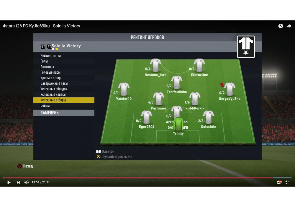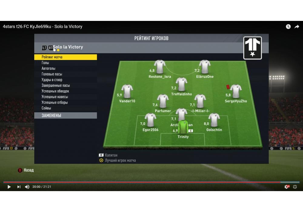 Solo la Victory vs FC KyJle69lku Премьер лига Pro club 4Stars FIFA17 PC (режим профи) Игра заявлена 15 Декабря 2016 (#488496)