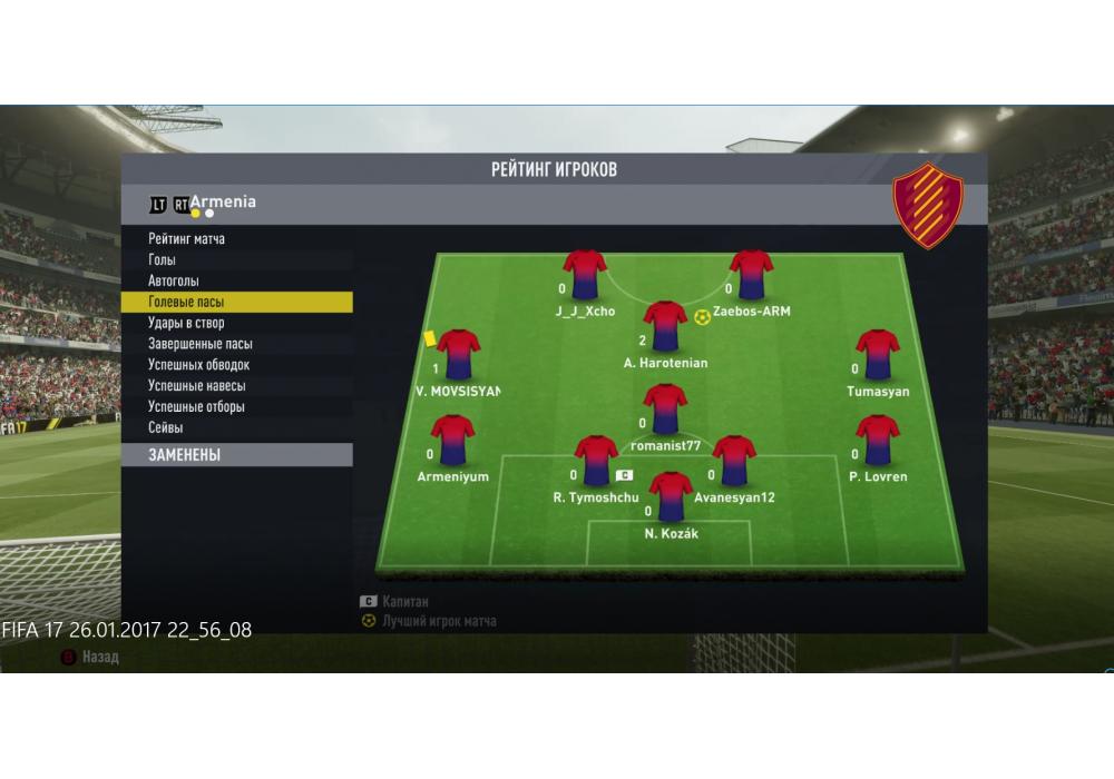 Red Lions F.C. vs FC LUIDOR Первая лига Pro club 4Stars FIFA17 PC (режим профи) Игра заявлена 26 Января 2017 (#503610)