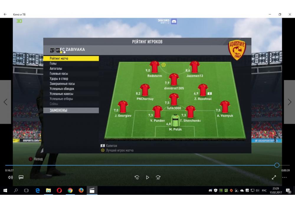RED SCORPIONS vs FC LUIDOR Первая лига Pro club 4Stars FIFA17 PC (режим профи) Игра заявлена 14 Февраля 2017 (#508848)