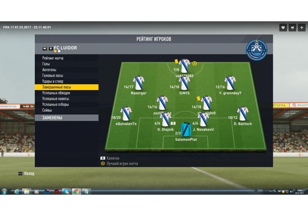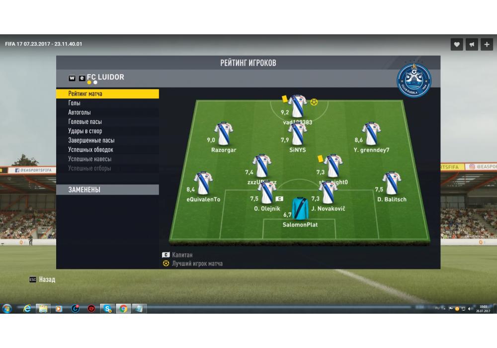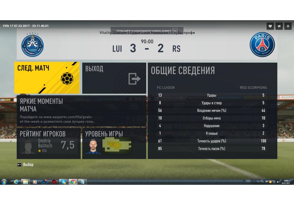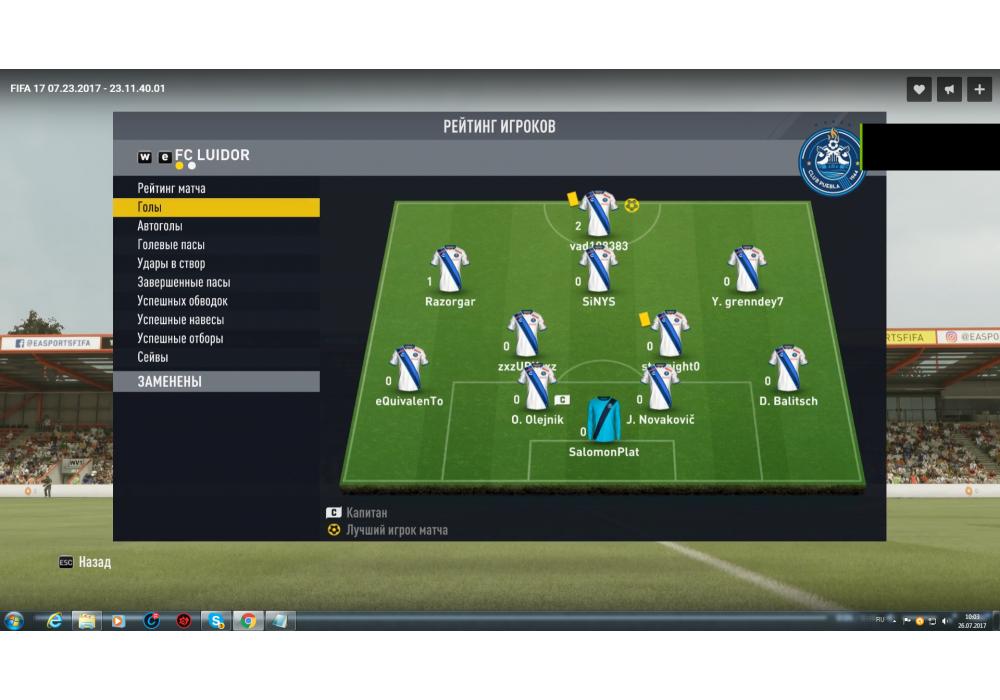 RED SCORPIONS vs FC LUIDOR Первая лига Pro club 4Stars FIFA17 PC (режим профи) Игра заявлена 23 Июля 2017 (#550716)