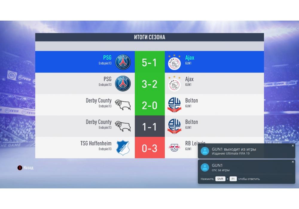 Paris Saint-Germain vs Ajax Турнир+ «РУССКАЯ РУЛЕТКА» / Лига Чемпионов FIFA19 PC Игра заявлена 9 Мая 2019 (#655952) | ||||||||||||||||||||||||||||||||||