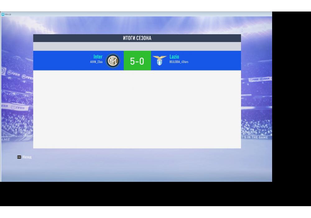 Inter vs Lazio Чемпионат Первой лиги FIFA PC Игра заявлена 28 Августа 2019 (#668680) | ||||||||||||||||||||||||||||||||||
