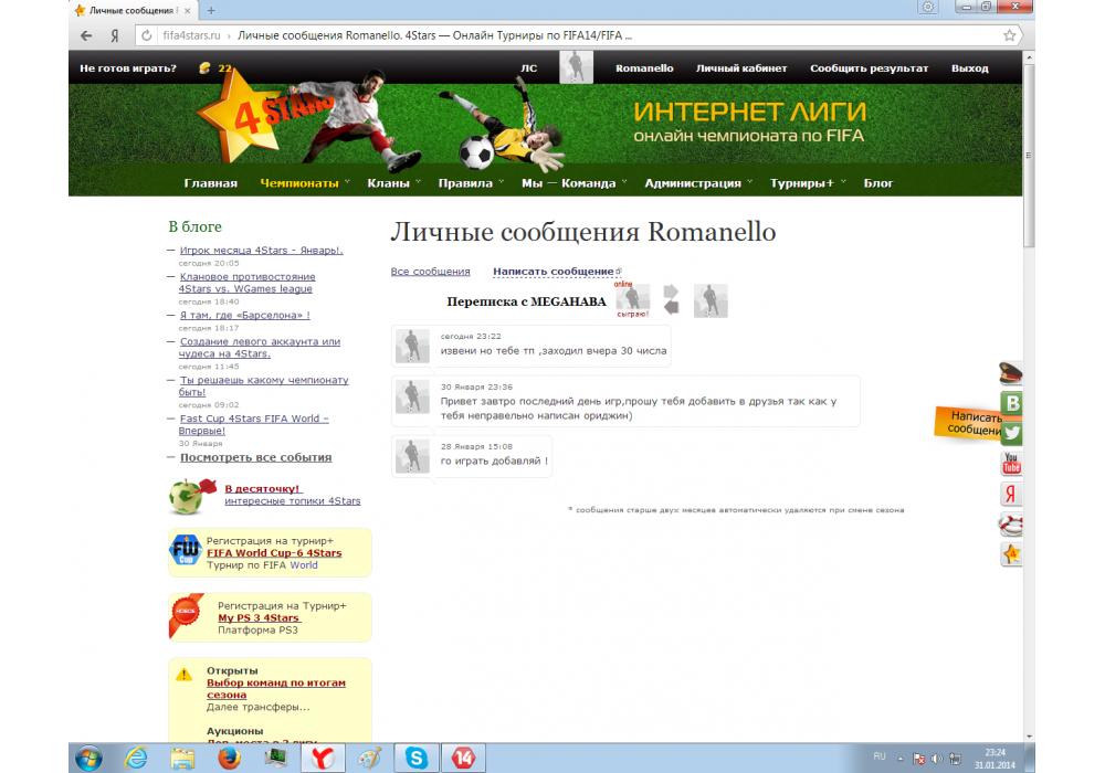 Romanello vs MEGAHABA турнир FIFA World Cup-5 4Stars Игра заявлена 31 Января 2014 (#87349) | ||||||||||||||||||||||||||||||||||