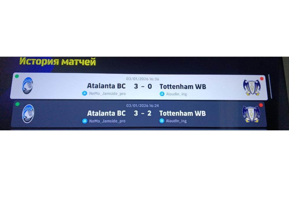 Atalanta vs Tottenham Hot. Чемпионат Премьер лиги eFootball26 сезон 17 Игра заявлена 3 Января (#893103) | ||||||||||||||||||||||||||||||||||
