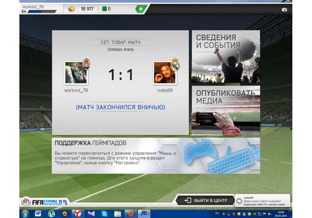 Ryaba vs workout_78 турнир FIFA World Cup-9 4Stars Игра заявлена 6 Марта 2014 (#100900) | ||||||||||||||||||||||||||||||||||