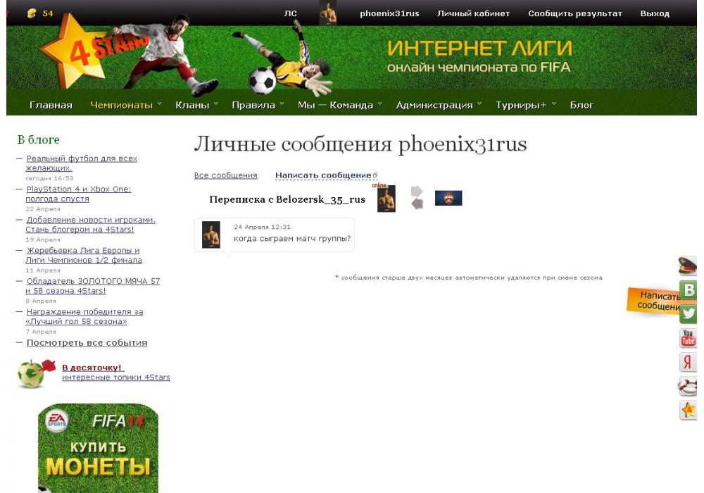 phoenix31rus vs Belozersk_35_rus турнир FIFA World Cup-12 4Stars Игра заявлена 25 Апреля 2014 (#121228) | ||||||||||||||||||||||||||||||||||