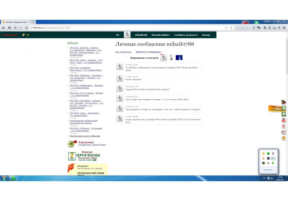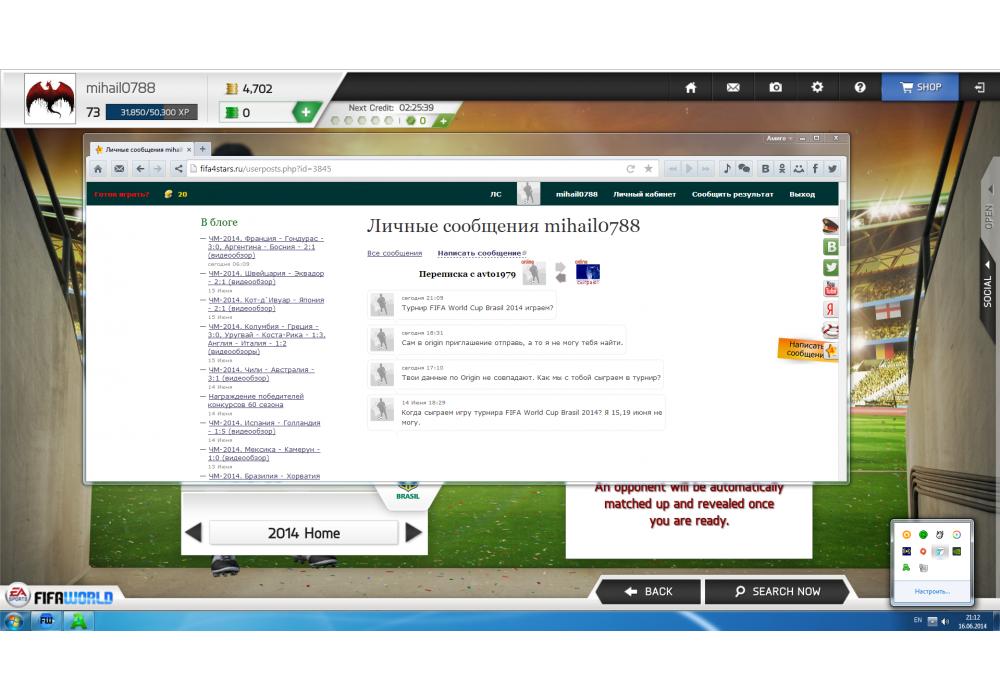 mihail0788 vs avto1979 Турнир FIFA World Cup Brasil 2014 4Stars Игра заявлена 18 Июня 2014 (#139320)