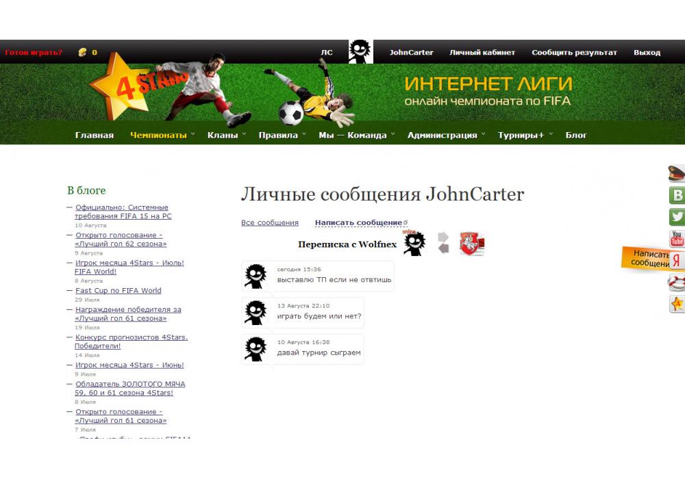 JohnCarter vs Wolfnex Турнир+ FIFA World Cup-27 4Stars Игра заявлена 14 Августа 2014 (#167548) | ||||||||||||||||||||||||||||||||||