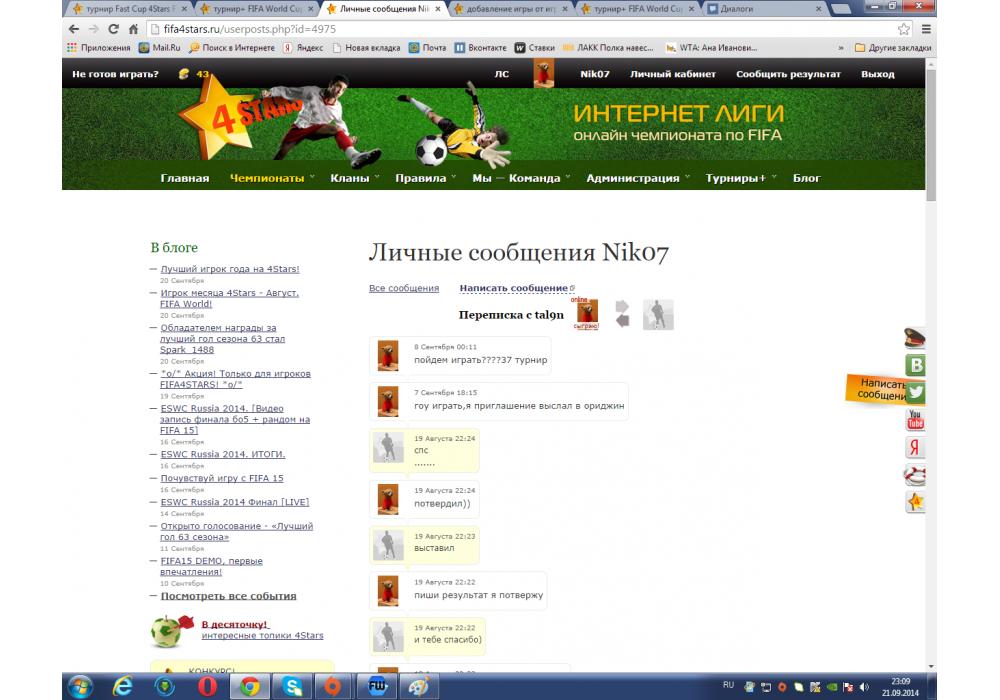 $Nik$07 vs tal9n турнир+ FIFA World Cup-37 4Stars Игра заявлена 21 Сентября 2014 (#182661) | ||||||||||||||||||||||||||||||||||