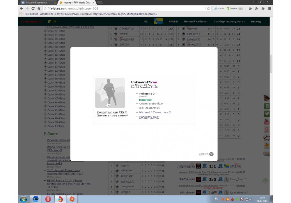 DRoX vs UnknownFW турнир+ FIFA World Cup-39 4Stars Игра заявлена 21 Сентября 2014 (#182699) | ||||||||||||||||||||||||||||||||||