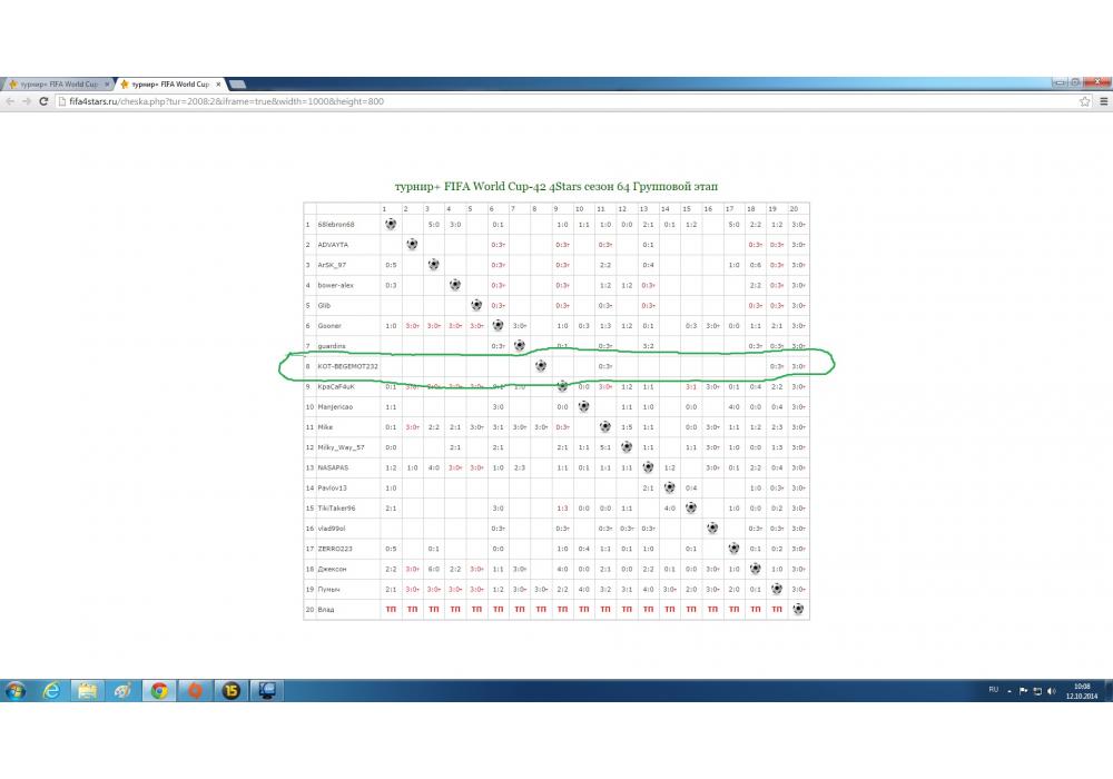 Джексон vs KOT-BEGEMOT232 турнир+ FIFA World Cup-42 4Stars Игра заявлена 12 Октября 2014 (#187868) | ||||||||||||||||||||||||||||||||||