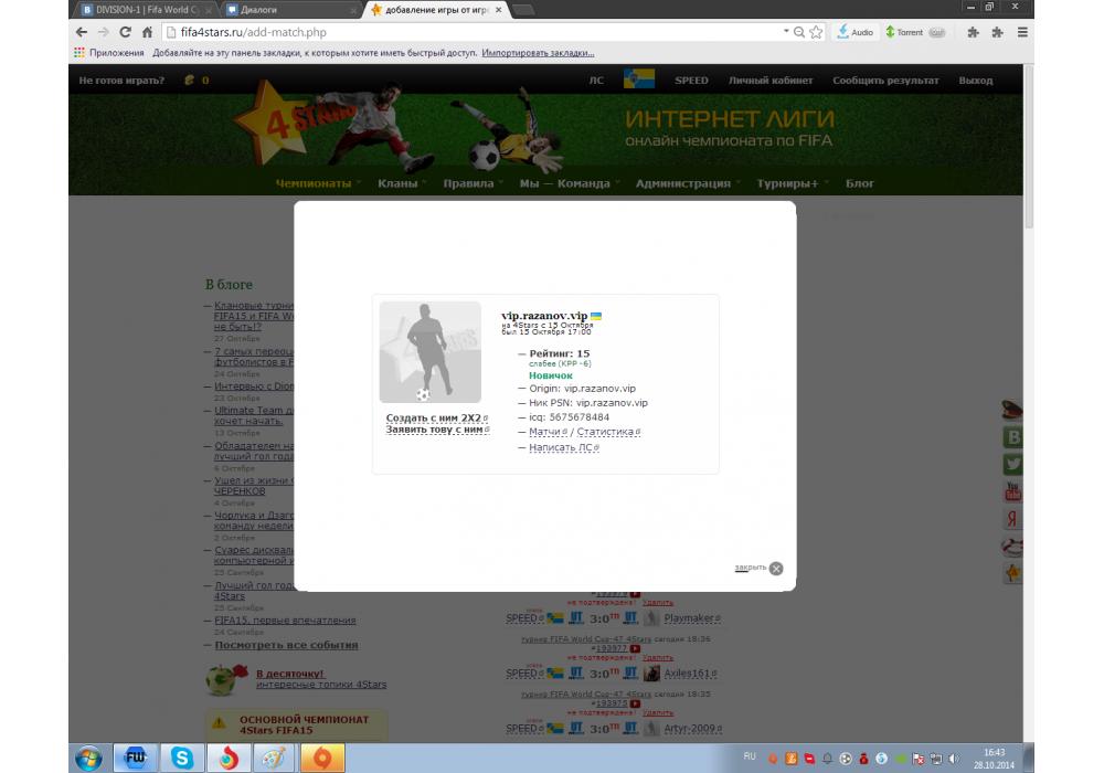 DRoX vs vip.razanov.vip турнир FIFA World Cup-47 4Stars Игра заявлена 28 Октября 2014 (#193985) | ||||||||||||||||||||||||||||||||||
