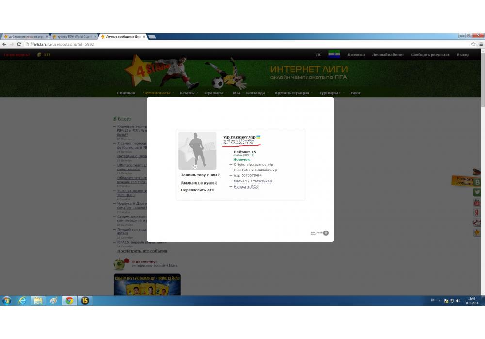 Джексон vs vip.razanov.vip турнир FIFA World Cup-45 4Stars Игра заявлена 30 Октября 2014 (#195028) | ||||||||||||||||||||||||||||||||||