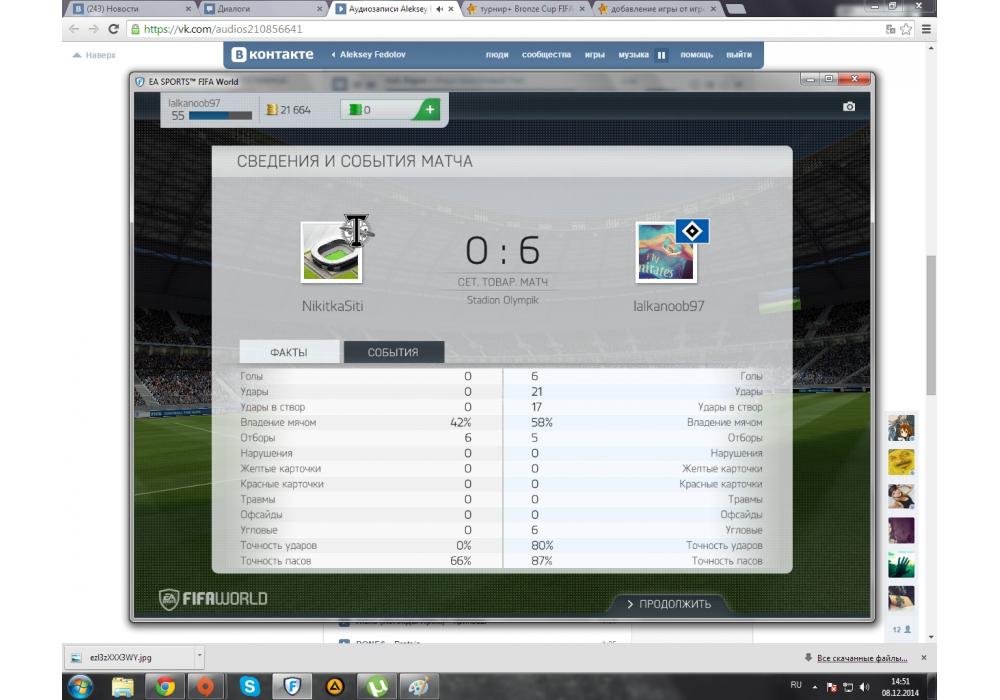 lalkanoob vs Удивительный мир Никитки турнир+ Bronze Cup FIFA World Игра заявлена 8 Декабря 2014 (#211253) | ||||||||||||||||||||||||||||||||||