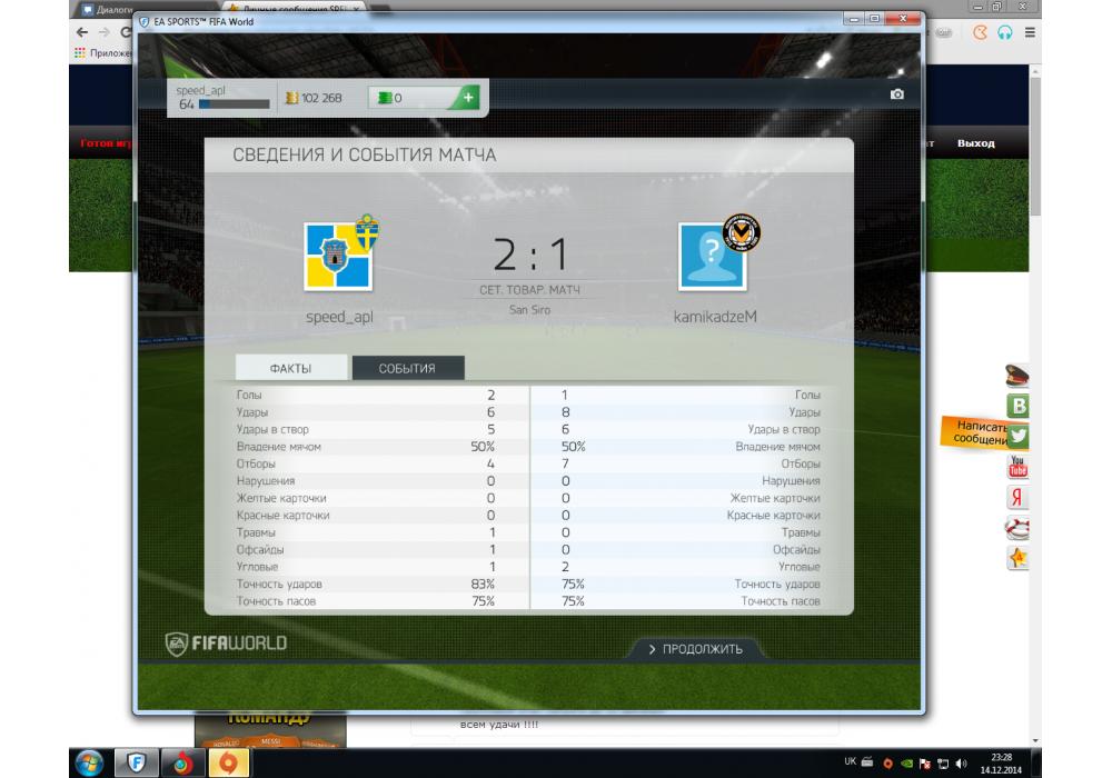 DRoX vs kamikadzeM Ultimate Team Coins Cup-3 FIFA World Игра заявлена 15 Декабря 2014 (#213939) | ||||||||||||||||||||||||||||||||||