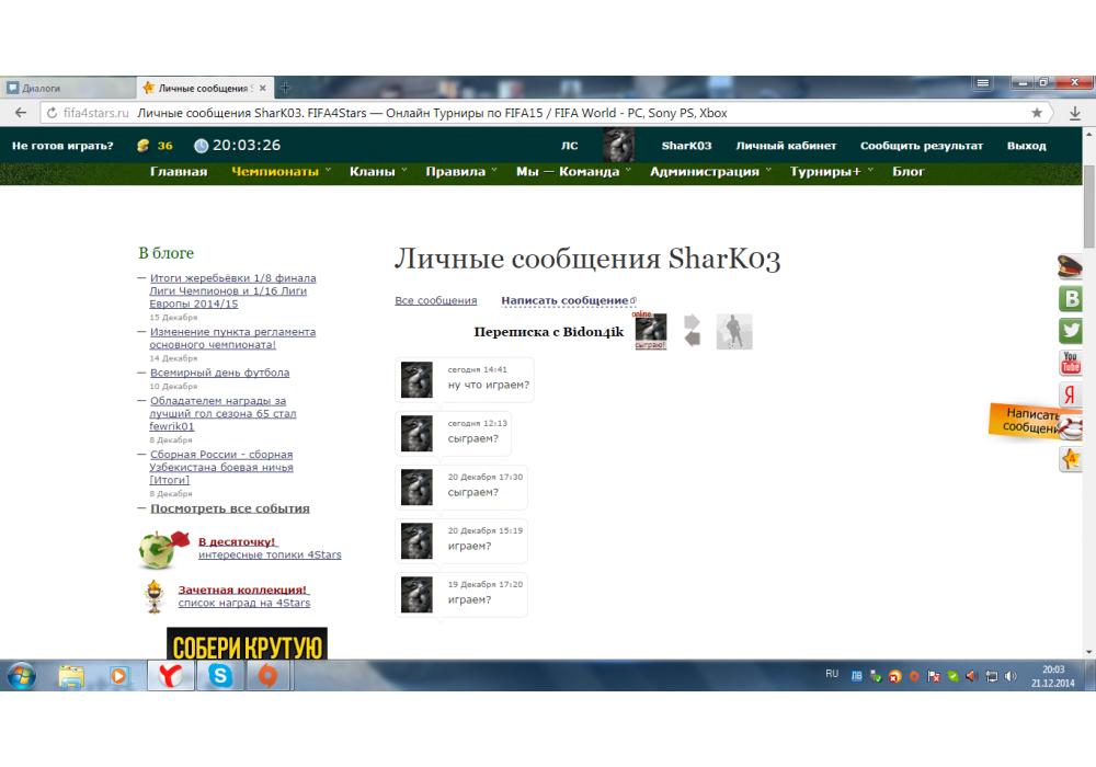SharK03 vs Bidon4ik Ultimate Team Coins Cup-3 FIFA World Игра заявлена 21 Декабря 2014 (#217011) | ||||||||||||||||||||||||||||||||||