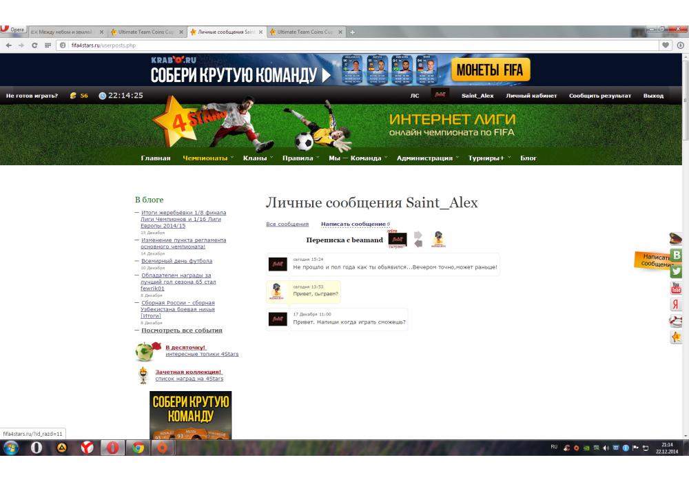 stickmygg vs beamand Ultimate Team Coins Cup-3 FIFA World Игра заявлена 22 Декабря 2014 (#217571) | ||||||||||||||||||||||||||||||||||