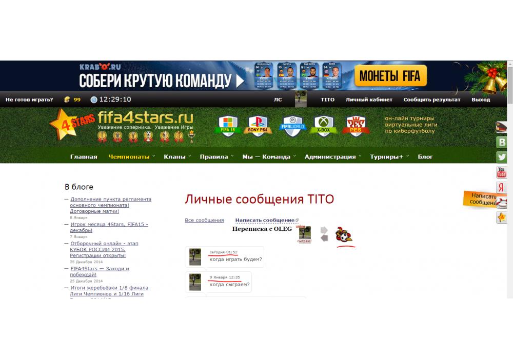 TITO vs OLEG турнир+ Кrabo & 4Stars Cup FIFA World Игра заявлена 10 Января 2015 (#222375)