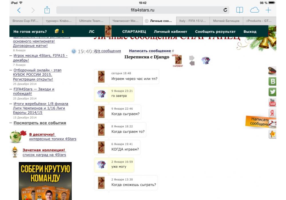 СПАРТАНЕЦ vs Django турнир+ Кrabo & 4Stars Cup FIFA World Игра заявлена 10 Января 2015 (#222705) | ||||||||||||||||||||||||||||||||||