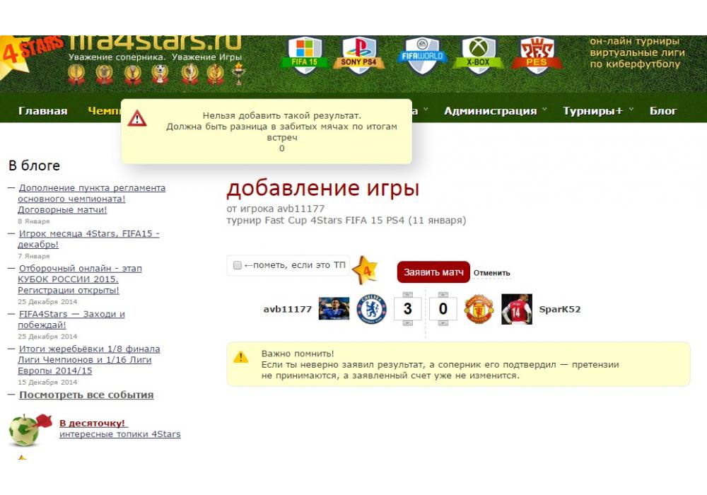 Zenit St. Petersburg vs Paris Saint-Germain турнир Fast Cup 4Stars FIFA 15 PS4 (11 января) Игра заявлена 11 Января 2015 (#223238) | ||||||||||||||||||||||||||||||||||