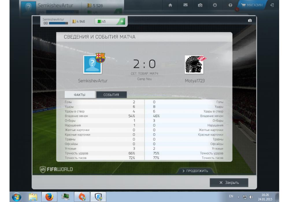 СПАРТАНЕЦ vs artur_football Турнир+ Silver Cup FIFA World Игра заявлена 24 Января 2015 (#229773) | ||||||||||||||||||||||||||||||||||