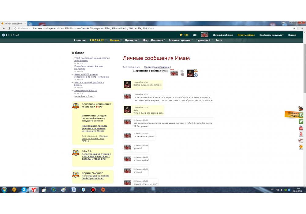 Slava211 vs Имам Турнир+ 23 февраля FIFA World Игра заявлена 24 Февраля 2015 (#243808) | ||||||||||||||||||||||||||||||||||