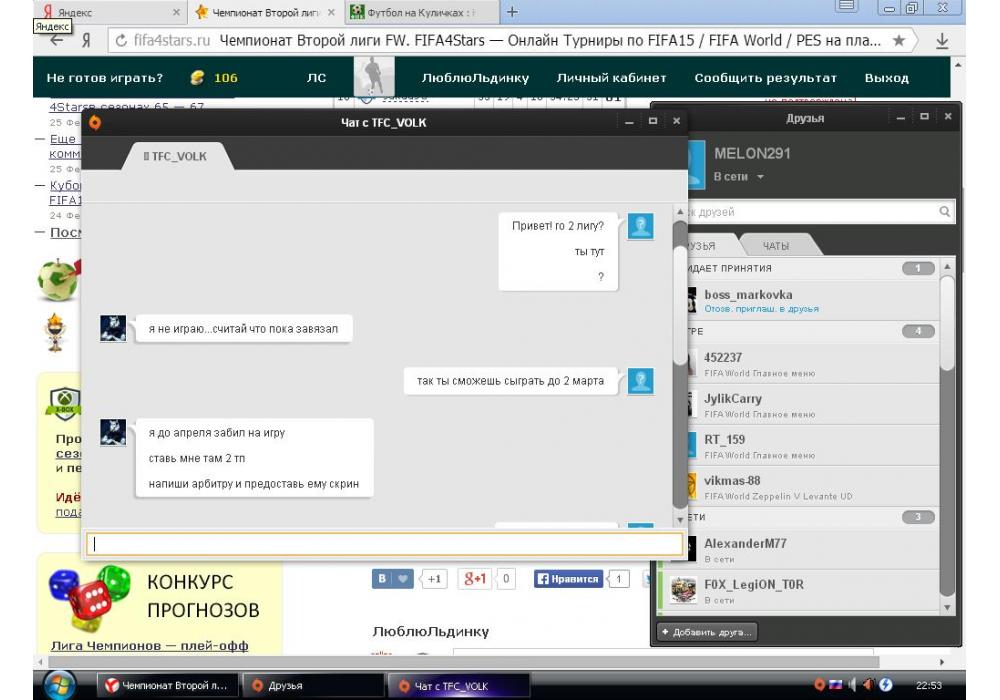 ЛюблюЛьдинку vs NYKO_VOLK Чемпионат Второй лиги FW Игра заявлена 28 Февраля 2015 (#246689) | ||||||||||||||||||||||||||||||||||