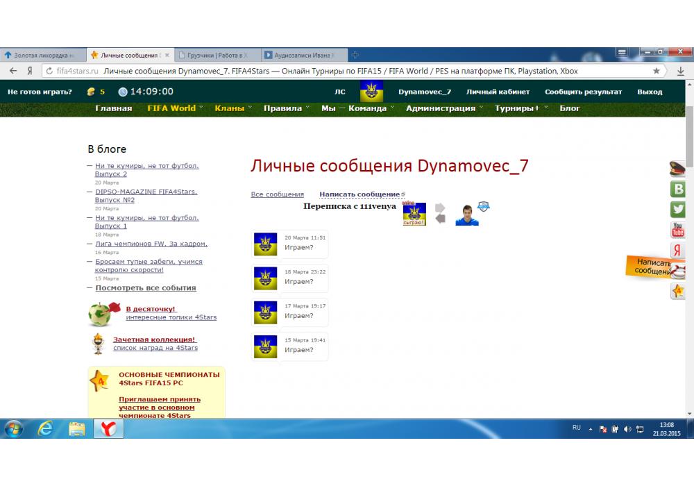 Dynamovec_7 vs 111venya Турнир+ Cool Cup-5 FIFA World Игра заявлена 21 Марта 2015 (#258367) | ||||||||||||||||||||||||||||||||||