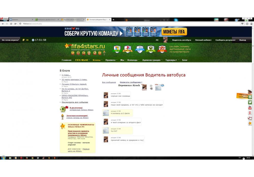 Водитель автобуса vs Kruch Fast Cup-2 4Stars FIFA World (22 марта) Игра заявлена 22 Марта 2015 (#259008) | ||||||||||||||||||||||||||||||||||