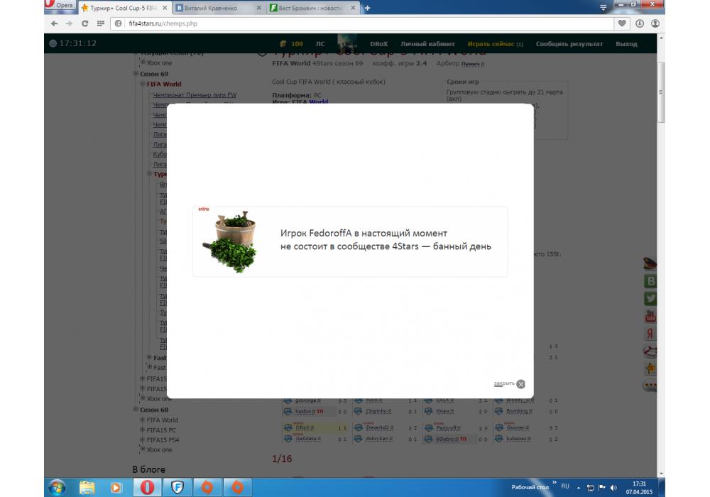 DRoX vs FedoroffA Турнир+ Cool Cup-5 FIFA World Игра заявлена 8 Апреля 2015 (#265643) | ||||||||||||||||||||||||||||||||||