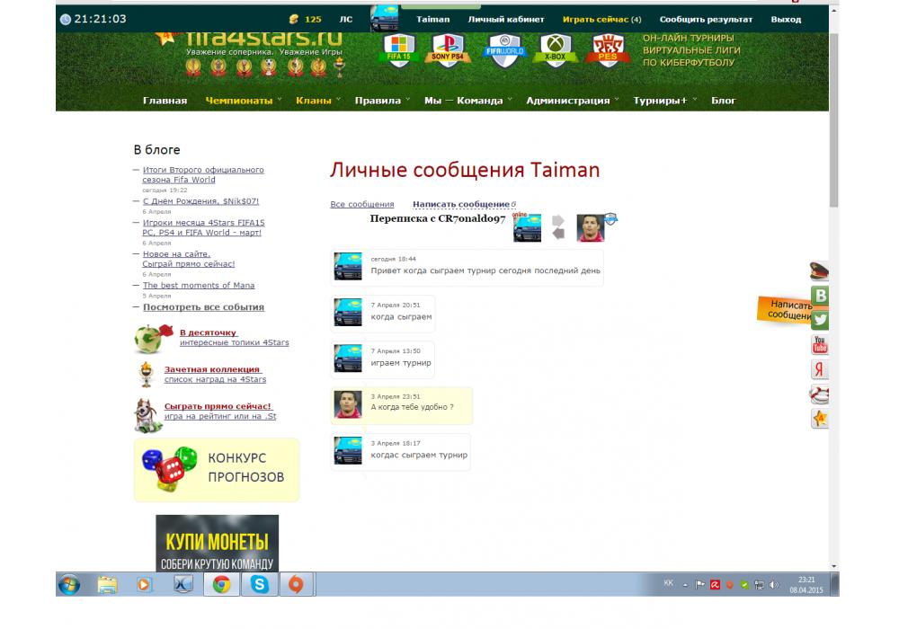 Taiman vs CR7onaldo97 Турнир+ FIFA World Scouts Cup Игра заявлена 8 Апреля 2015 (#265730) | ||||||||||||||||||||||||||||||||||