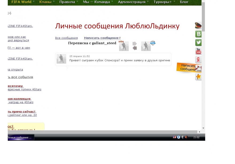 ЛюблюЛьдинку vs gallant_steed Кубок Спонсора FIFA World Игра заявлена 27 Апреля 2015 (#276402) | ||||||||||||||||||||||||||||||||||