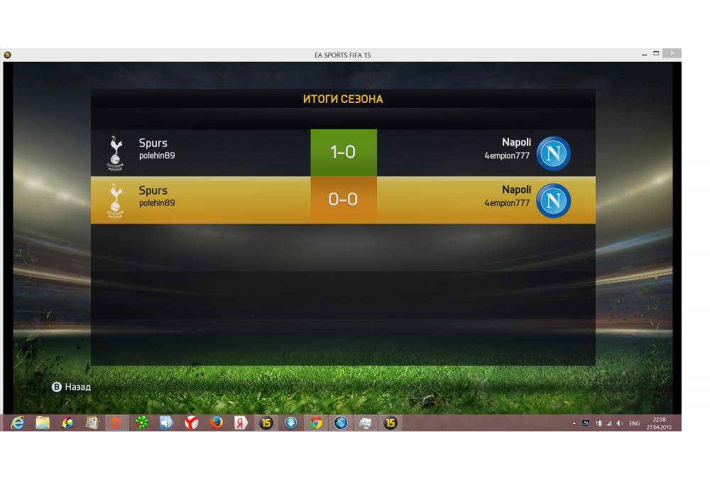 Tottenham Hot. vs SSC Napoli Чемпионат Первой лиги PC Игра заявлена 27 Апреля 2015 (#276450) | ||||||||||||||||||||||||||||||||||