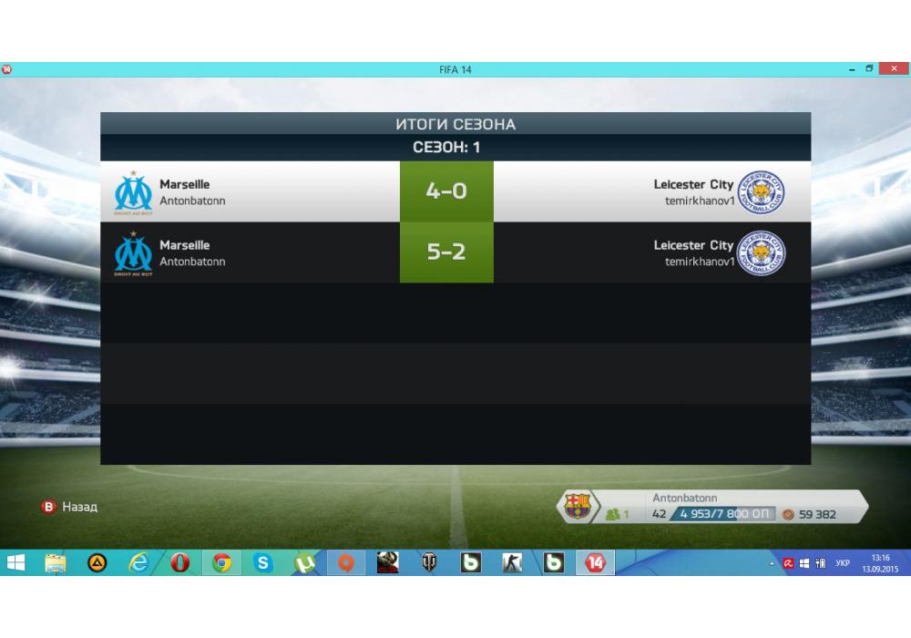 Olympique de Marseille vs Leicester City Чемпионат Второй лиги PC 74-2 Игра заявлена 13 Сентября 2015 (#330463) | ||||||||||||||||||||||||||||||||||