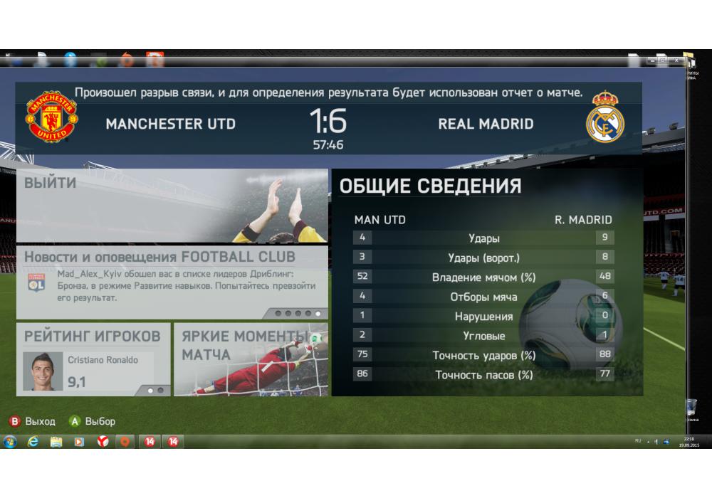 Real Madrid vs Manchester Utd. Чемпионат Премьер лиги PC 74-2 Игра заявлена 19 Сентября 2015 (#332165)