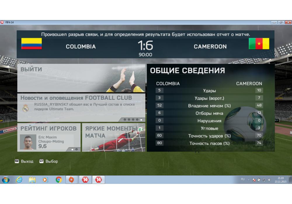 Cameroon vs Colombia Чемпионат Мира PC 14 Игра заявлена 23 Ноября 2015 (#355364) | ||||||||||||||||||||||||||||||||||