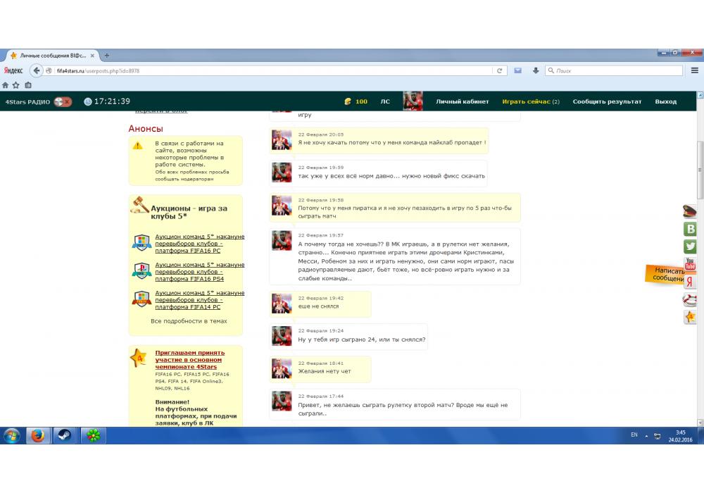 Fiorentina vs Zenit St. Petersburg Турнир+ «РУССКАЯ РУЛЕТКА»/ Лига ТОП 20 PES2016 PC Игра заявлена 23 Февраля 2016 (#393517) | ||||||||||||||||||||||||||||||||||