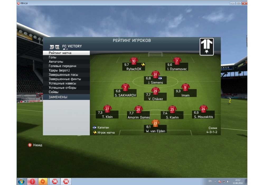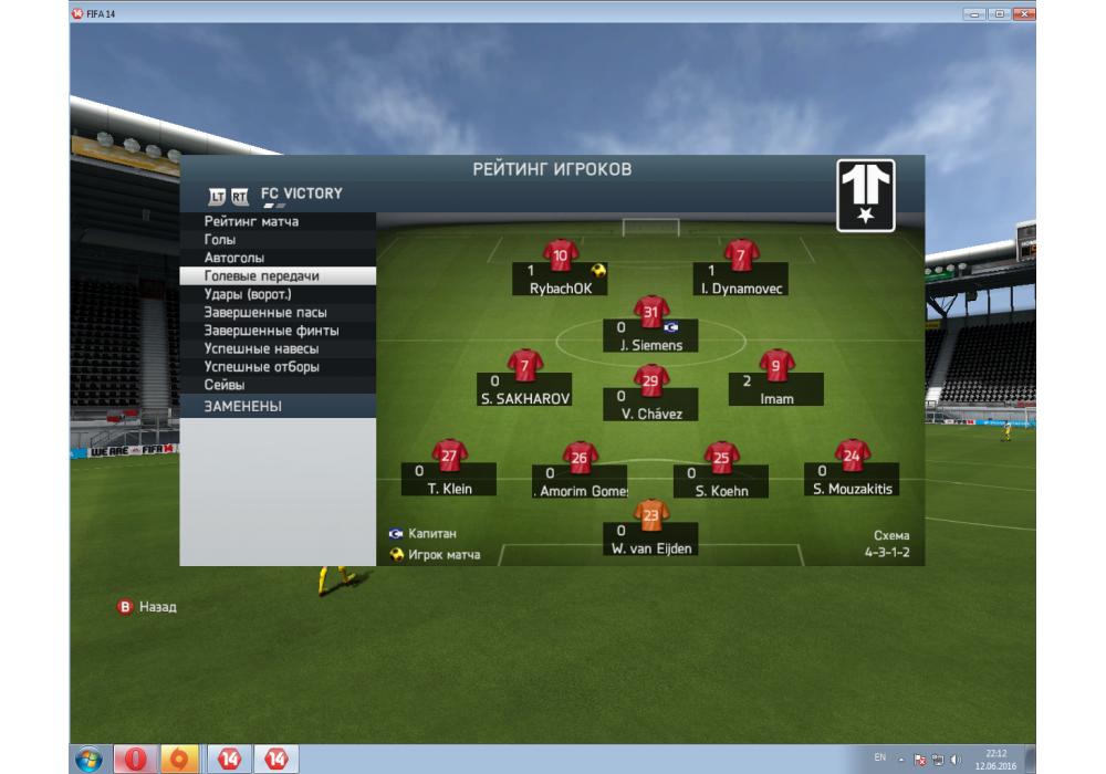FC VICTORY vs Тайфун 4Stars League PC FIFA14 (режим профи) Игра заявлена 12 Июня 2016 (#436915)