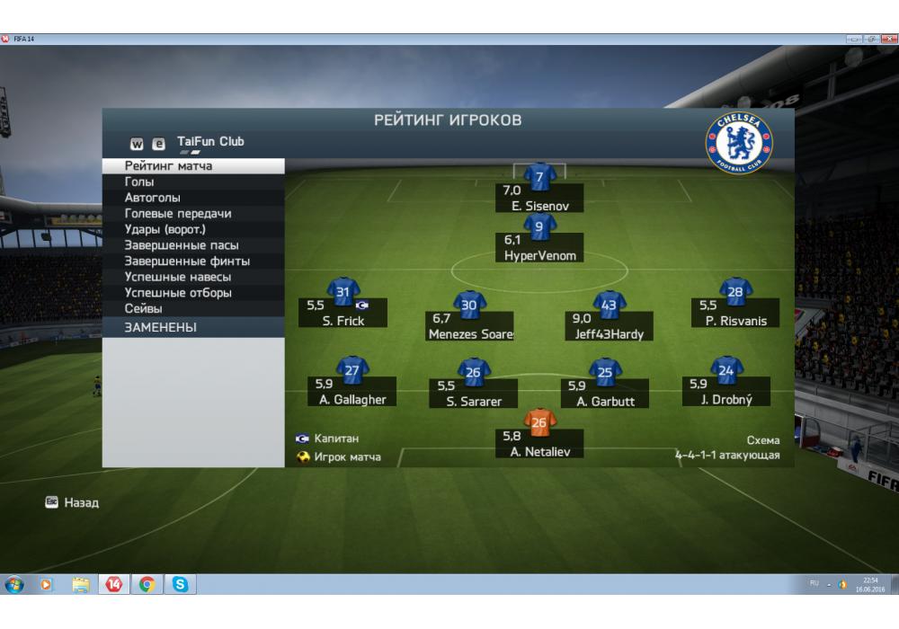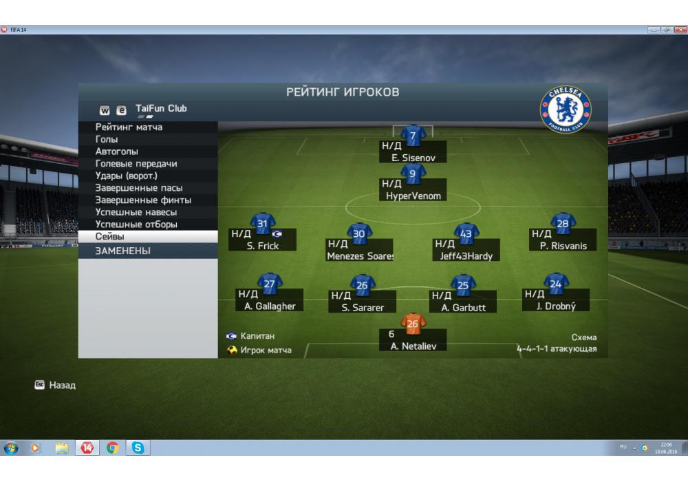 Kapkan vs Тайфун 4Stars League PC FIFA14 (режим профи) Игра заявлена 16 Июня 2016 (#439014)