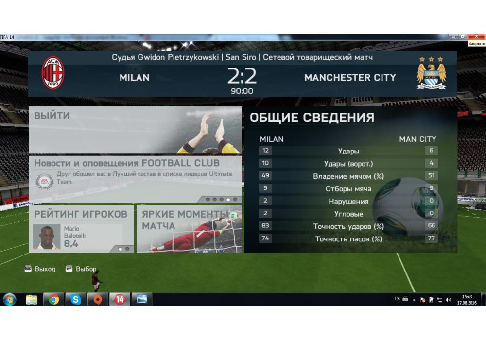 Manchester City vs Milan Чемпионат Премьер Лиги FIFA14 Игра заявлена 17 Августа 2016 (#459796)