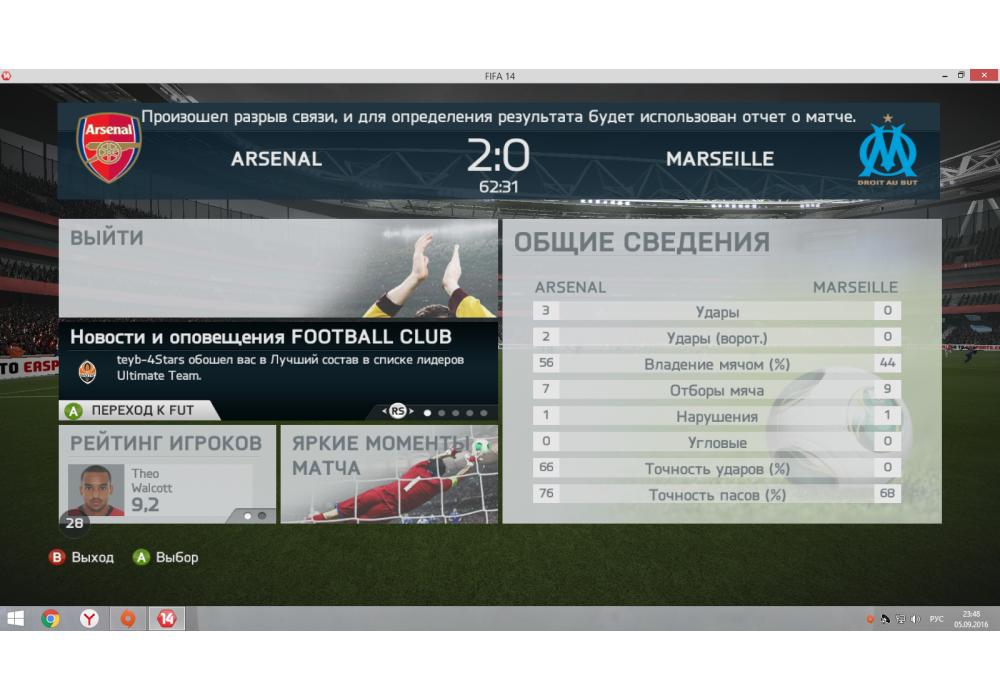 Arsenal vs Olympique de Marseille Чемпионат Первой лиги FIFA14 Игра заявлена 5 Сентября 2016 (#465499) | ||||||||||||||||||||||||||||||||||